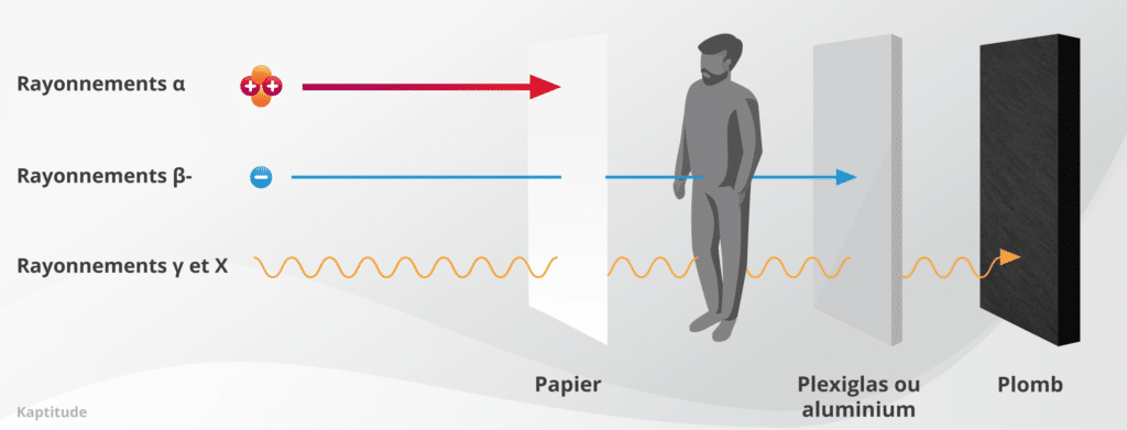 Les particules α ont un pouvoir ionisant très important, c’est-à-dire qu’elles vont arracher beaucoup d’électrons aux atomes rencontrés sur leur passage.