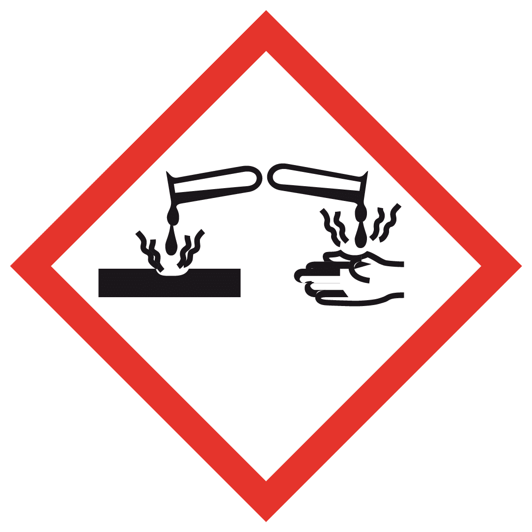 Signale les produits qui provoquent des brûlures chimiques (des tissus vivants).