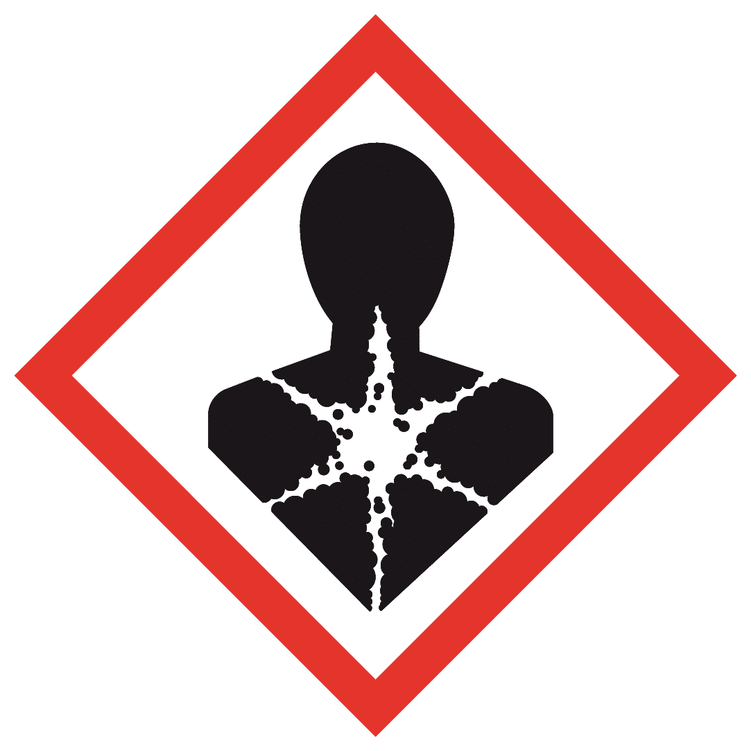 Signale les allergisants respiratoires, les produits cancérogènes, mutagènes, toxiques pour la reproduction ou pour un organe cible. En général, les effets ne sont pas liés à la dose.