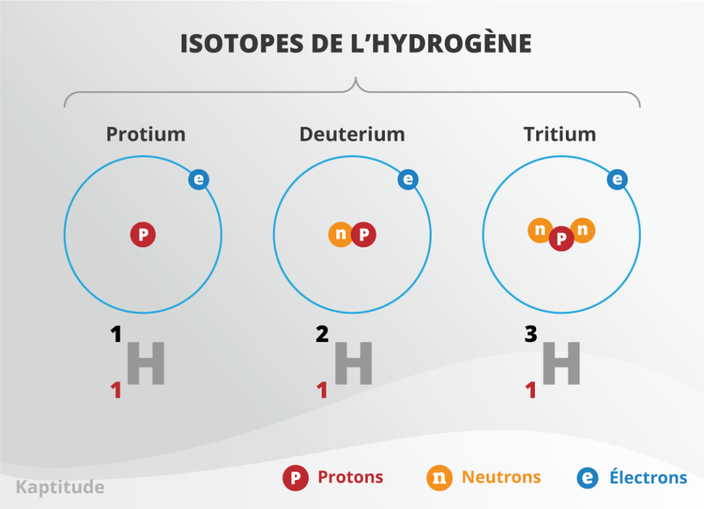 • L’hydrogène-3 (Tritium) a deux neutrons et un proton