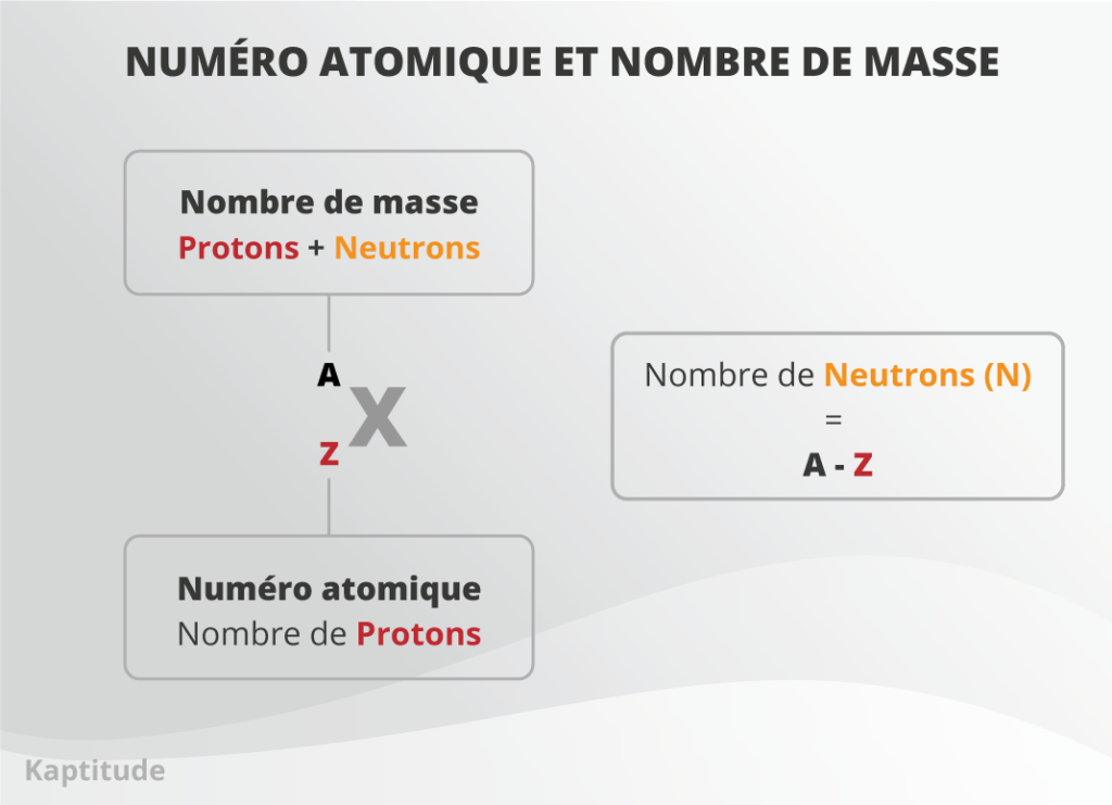 Le nombre de neutrons est donc égal au nombre de masse A moins le numéro atomique Z.