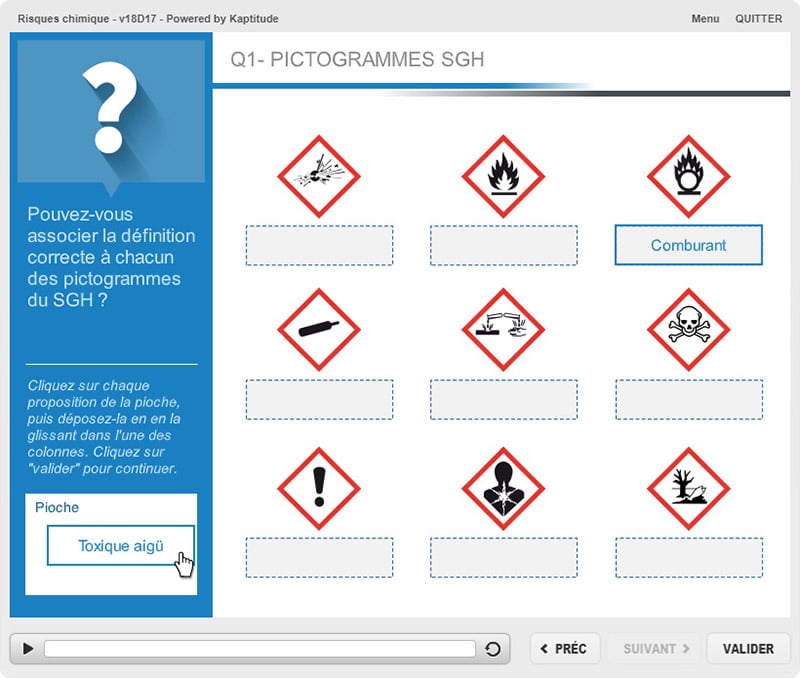 - Reconnaître les principaux risques (généraux, incendie, chimiques, biologiques, spéciaux).