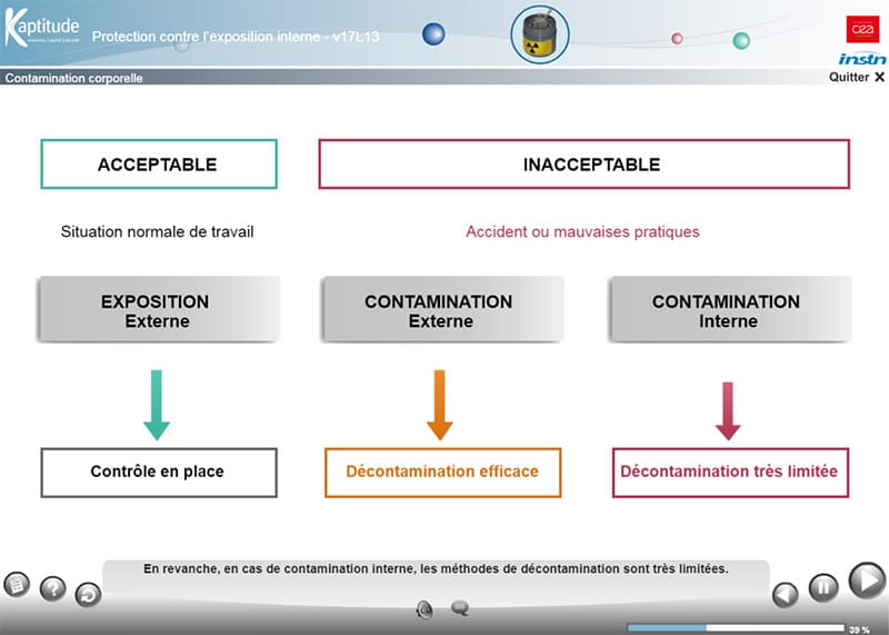 La Personne Compétente en Radioprotection (PCR), utilisera la formation en ligne pour s’assurer que tous les personnels sont bien formés sur la partie théorique de la radioprotection et pourra ainsi dédier ses efforts à la formation pratique sur le poste de travail.