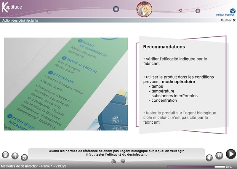 Dans le cadre de la prévention en entreprise, la formation du personnel est une étape clef. L’objectif du parcours « essentiel » est de faire prendre conscience des dangers et de transmettre suffisamment d’informations et de connaissances pour travailler avec des micro-organismes de groupes 1 et 2.