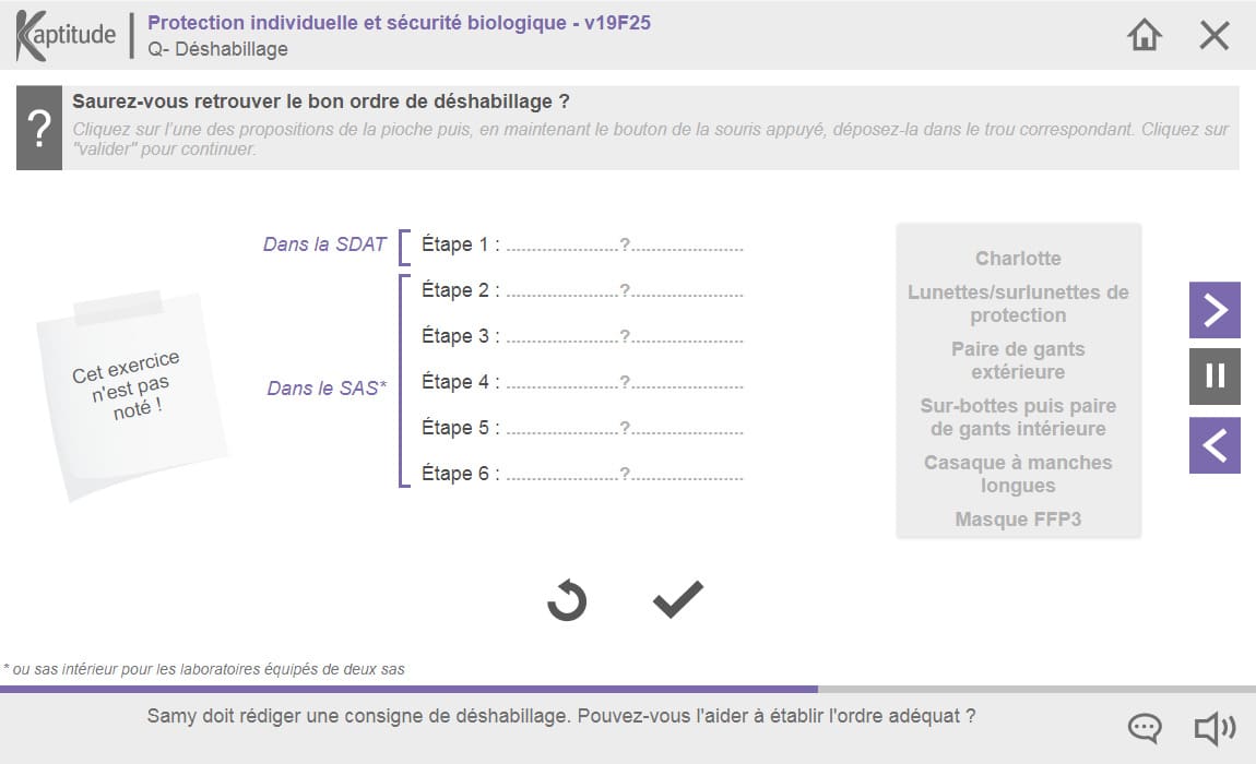 - Connaître les équipements de protection collective et individuelle à utiliser en laboratoires L3 ainsi que les consignes de sécurité biologique.