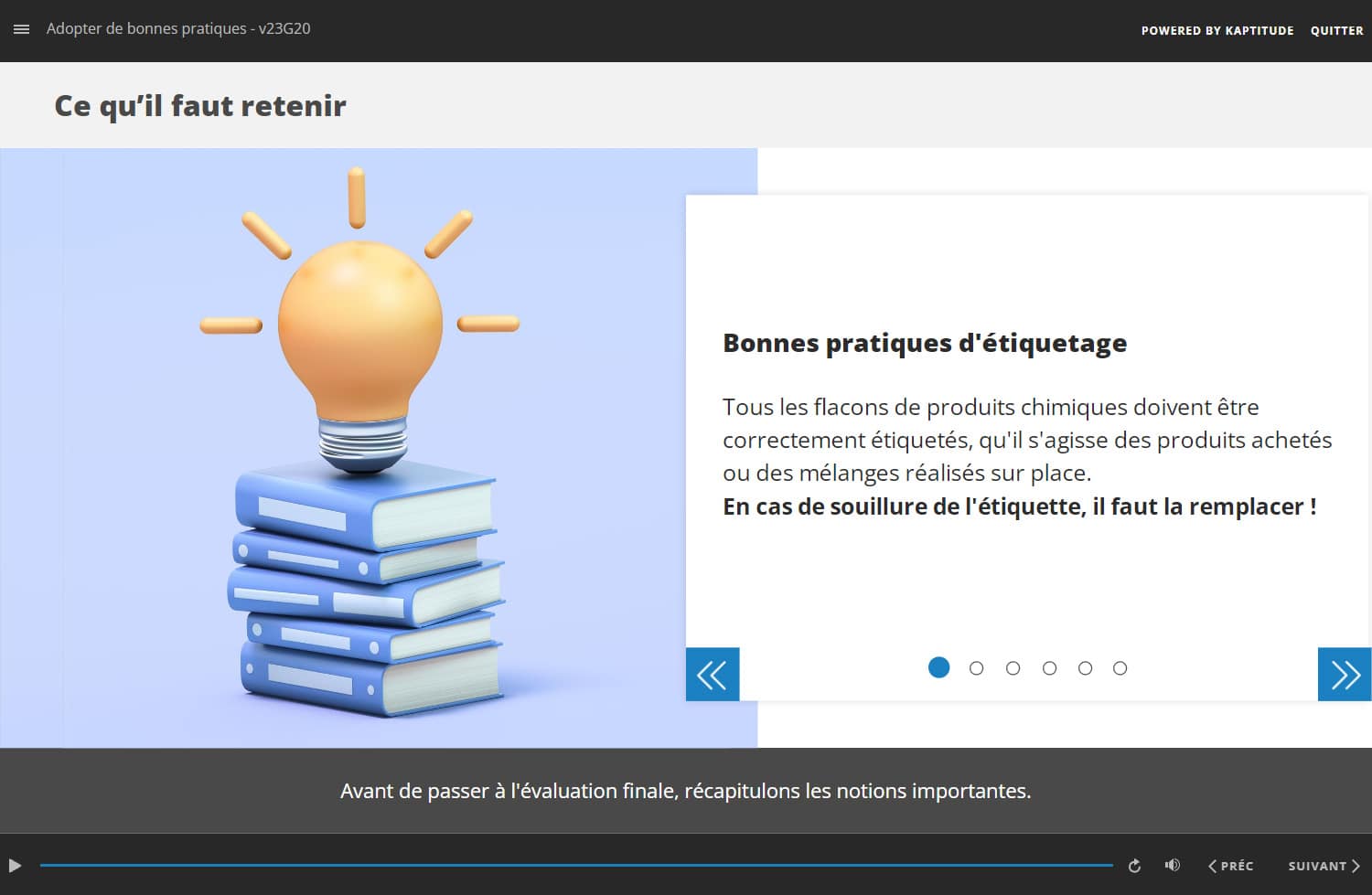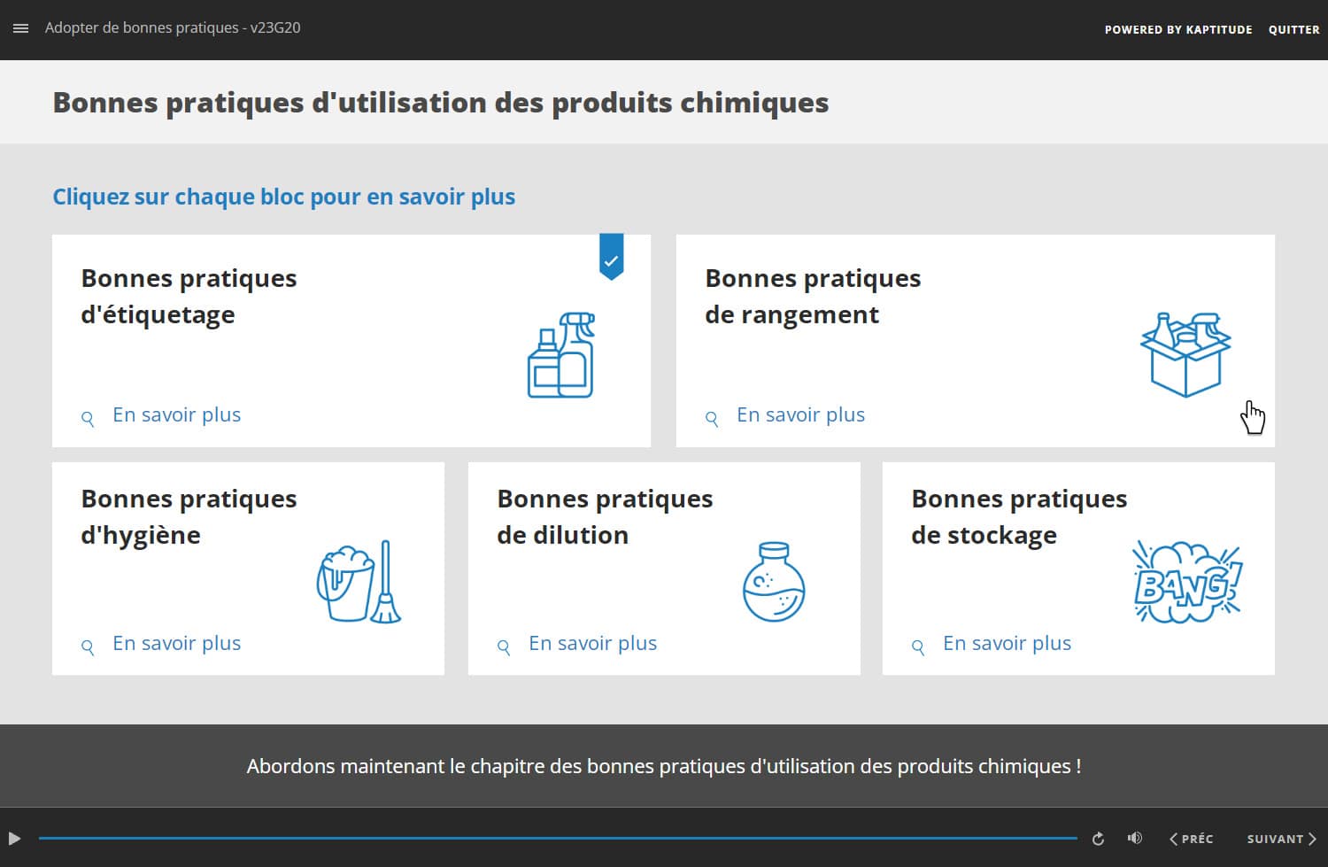 • Connaître les bonnes pratiques de manipulation de produits chimiques (étiquetage, dilution, rangement et stockage, hygiène)