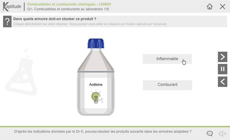 Tous les produits combustibles ne réagissent pas de façon identique. La connaissance de leur propriété d’inflammabilité est essentielle pour permettre leur stockage et leur manipulation en toute sécurité. Les comburants eux, doivent être tenus à distance des inflammables ; repérer ces produits est essentiel pour éviter les accidents notamment les incendies et les explosions.