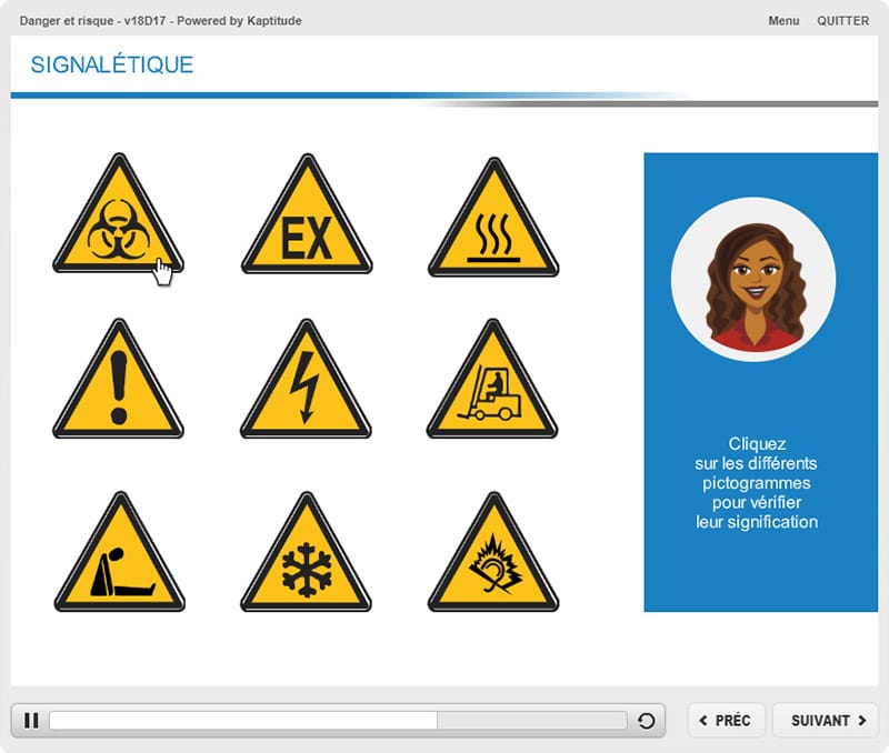 - Reconnaître les pictogrammes d’avertissement et d’obligation.