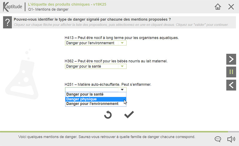 - Comprendre la complémentarité entre pictogramme et mentions de danger.