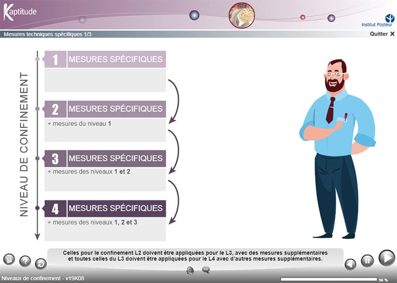 - Appliquer les règles concernant les équipements des laboratoires ou des pièces de travail en fonction du niveau de sécurité biologique visé.